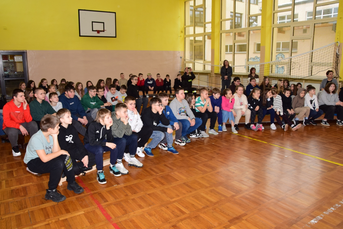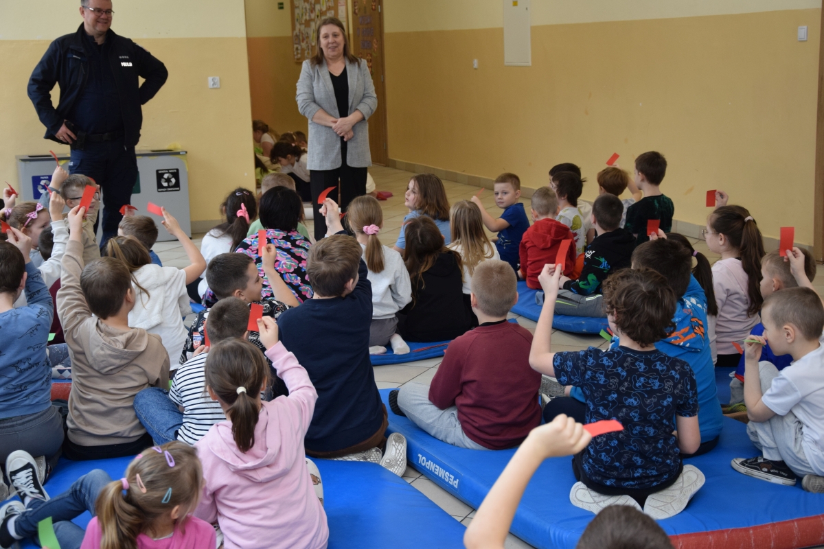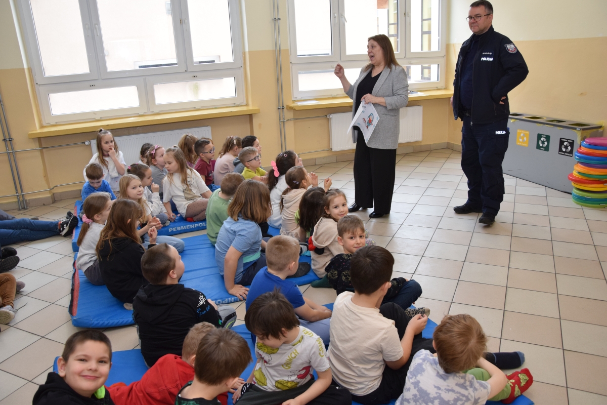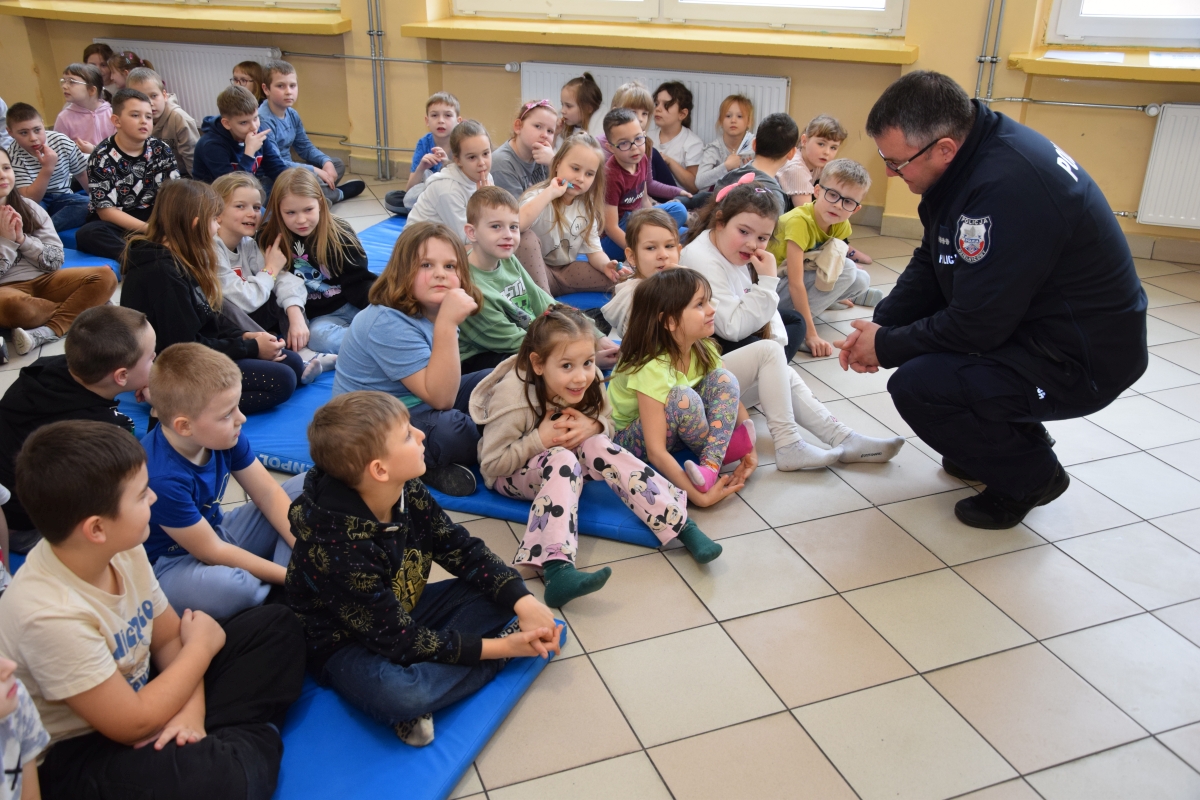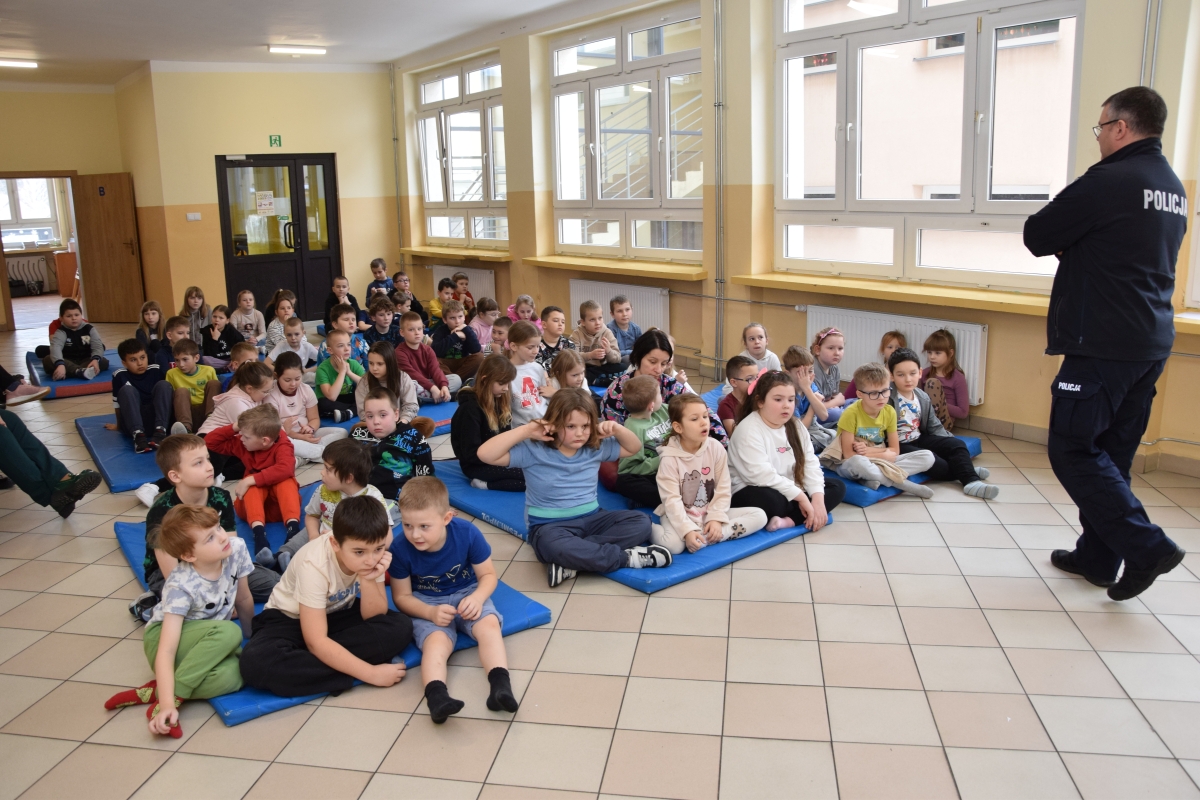 Uczniowie klas 1-3 oraz grupy przedszkolne spotkały się ze st. asp. Radosławem Sacewiczem z Komisariatu Policji w Terespolu, aby rozmawiać o bezpiecznych zabawach, utrwalać swoją wiedzę na temat właściwych zachowań podczas korzystania z uroków zimy.