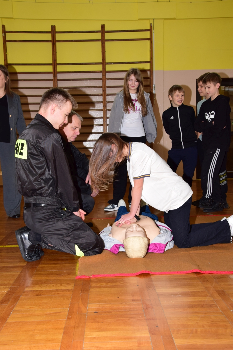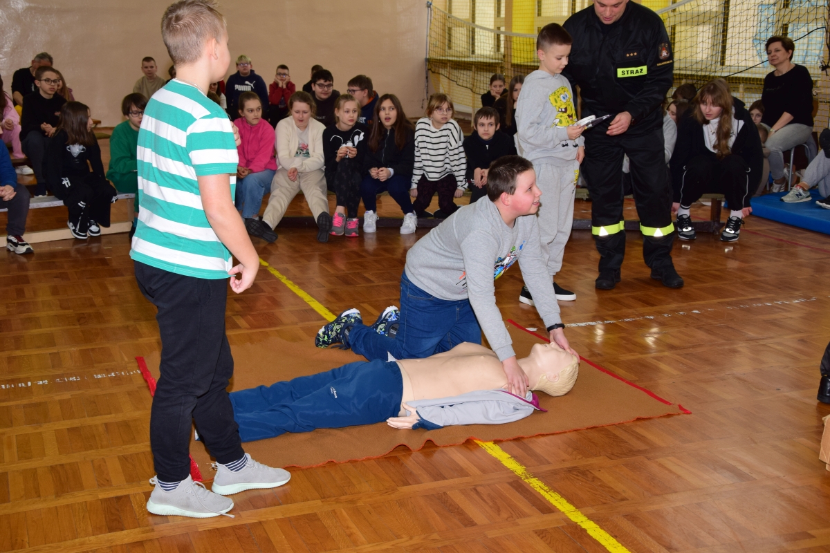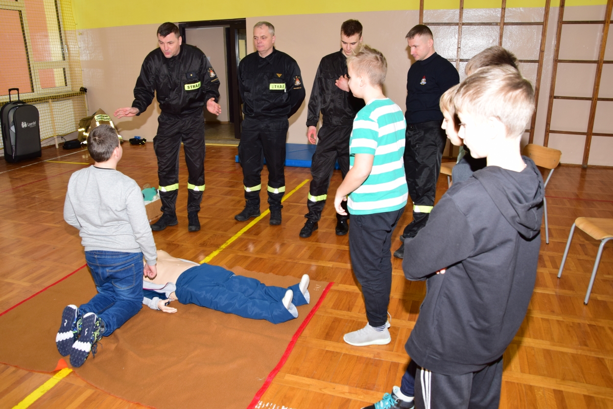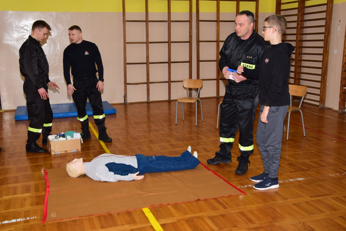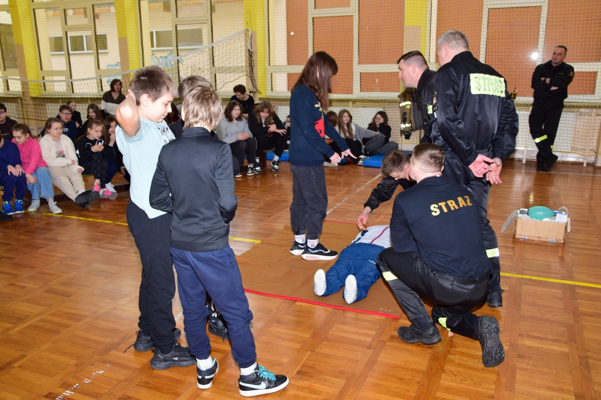 Strażacy zwrócili też uwagę na niebezpieczeństwo zatrucia tlenkiem węgla. Podkreślili, że montaż czujek to jeden z najprostszych sposobów ochrony życia i zdrowia. Dwaj uczniowie wyróżniający się wiedzą dotyczącą pierwszej pomocy, otrzymali takie czujki do swoich domów.