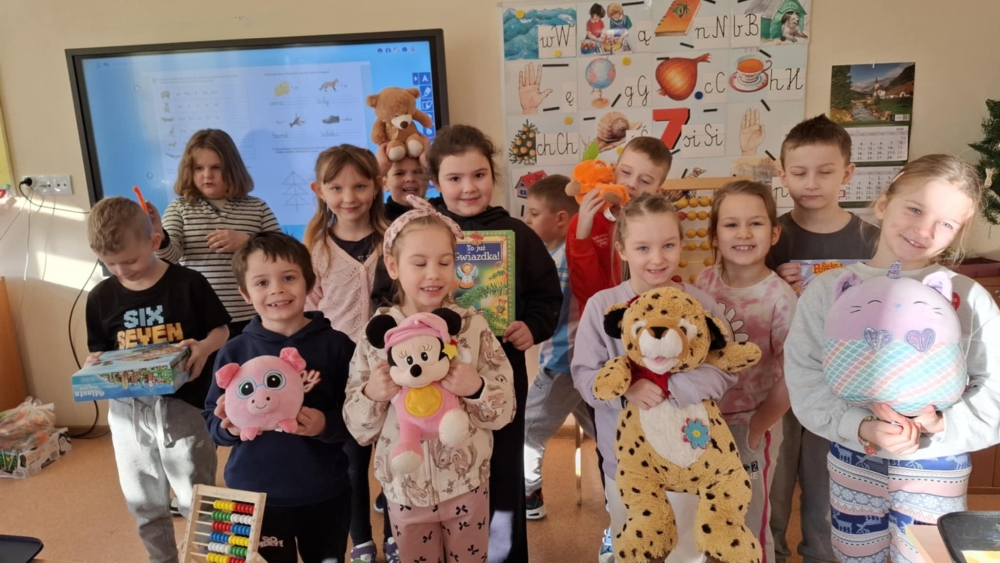 1. 20 stycznia zorganizowaliśmy w szkole loterię fantową, podczas której zebrano 902 złote.