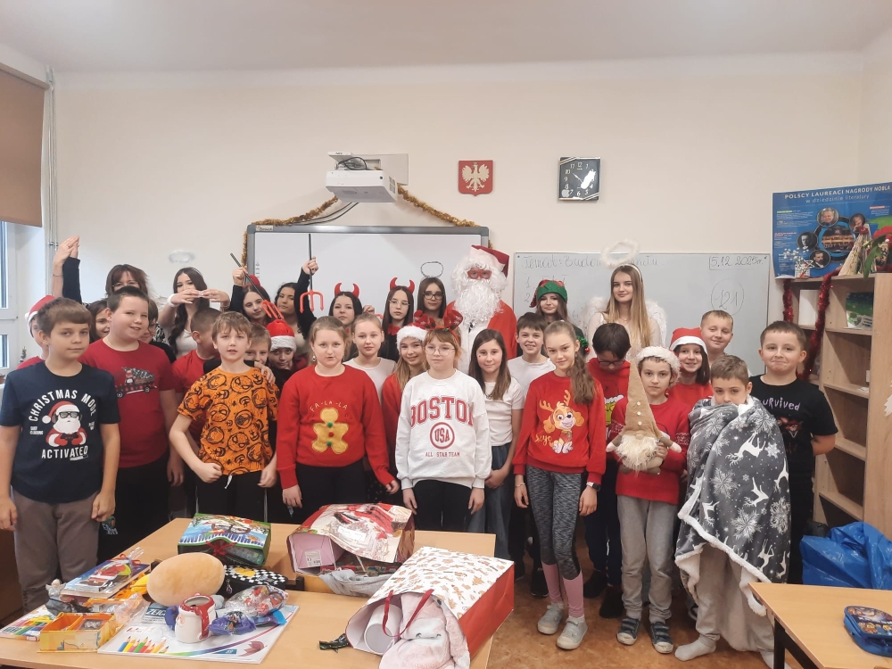 Największą atrakcją dnia była oczywiście wizyta Świętego Mikołaja. Przybył w towarzystwie Elfów, które pomagały mu w rozdawaniu prezentów. Każda klasa przywitała go w wyjątkowy sposób – piosenką, wierszykiem lub krótkim występem artystycznym. Uczniowie otrzymali drobne upominki, słodkości oraz pamiątkowe zdjęcia.