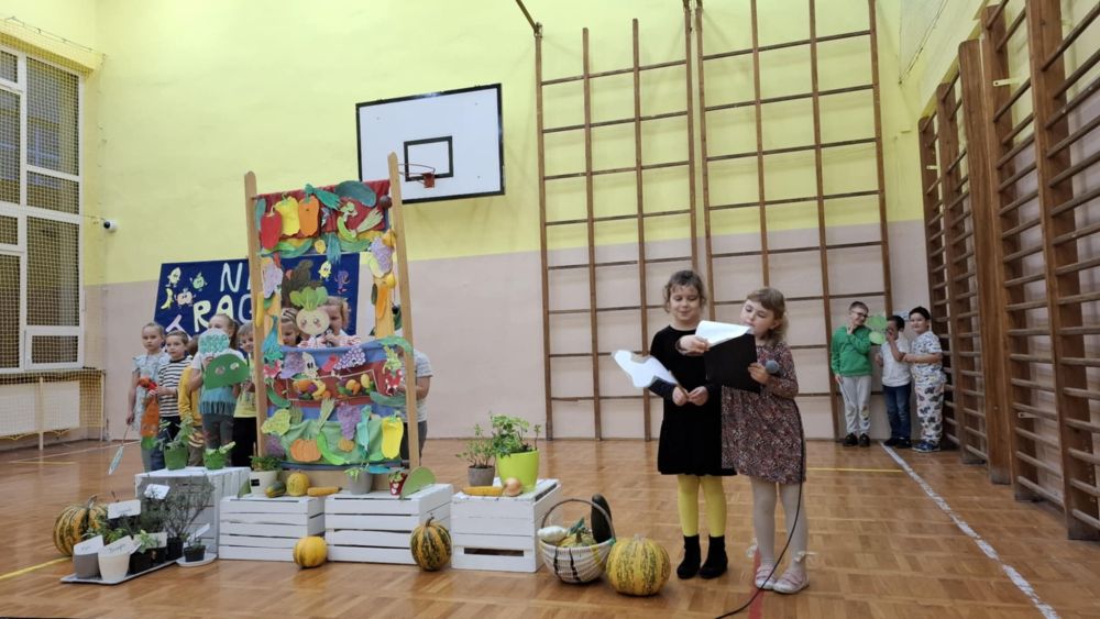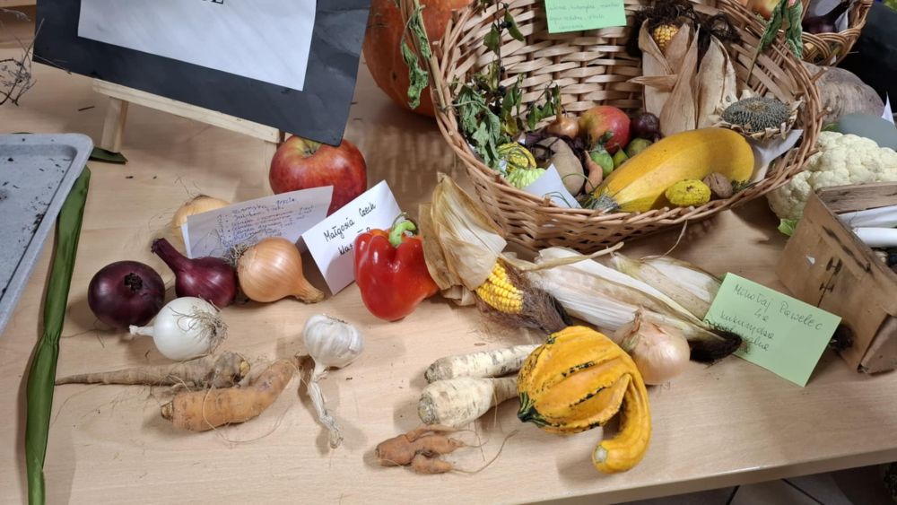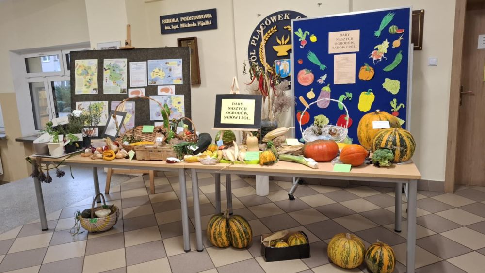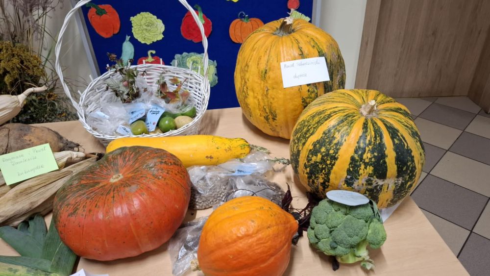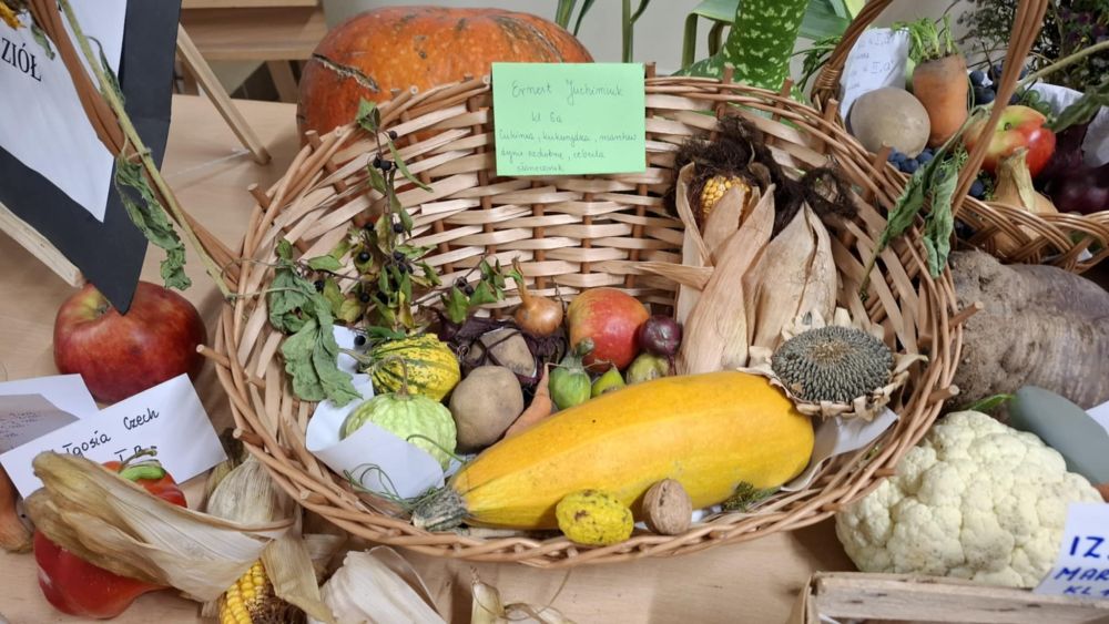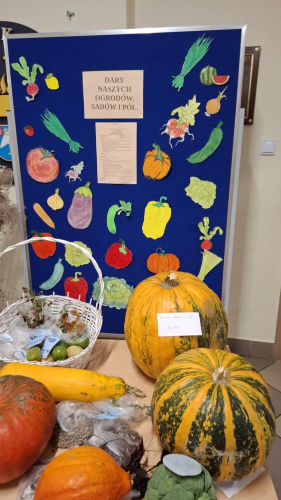 Wystawy: „Dary naszych ogrodów, sadów i pól” i ,,Wystawa ziół”-Kolejnym punktem akcji były wystawy prezentujące bogactwo lokalnej przyrody. Uczniowie dostarczyli warzywa, owoce, zboża, zioła i kwiaty, tworząc wspólnie barwną i pachnącą ekspozycję. Wystawa ukazała, jak wiele piękna i dobra daje nam nasza ziemia. Odbyła się również wycieczka do ogrodu zielnego, a na zajęciach świetlicowych dzieci rozwiązywały krzyżówki i zagadki o tematyce zdrowego odżywiania.
