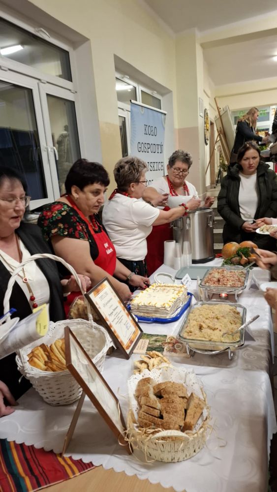 27 października, podczas spotkania z rodzicami, odbyła się prelekcja prowadzona przez panie z Koła Gospodyń Wiejskich w Kodniu – Mirosławę Semieniuk i Krystynę Krótkiewicz. Panie zaprezentowały tradycyjne potrawy regionalne, m.in. zupę z dyni- rozgrzewającą, wartościową i pełną jesiennych smaków, paluchy- swojskie, wypiekane wg dawnych receptur, ciap kapustę-tradycyjną potrawę, ktora pokazuje, że domowe jedzenie nie musi być skomplikowane, ciasto dziad- pachnące, miękkie i zakorzenione w naszej lokalnej historii i paluchy kresowe- ciasto drożdżowe wykonane wg dawnej receptury. Opowiedziały także o działalności Koła i o tym, jak ważne jest zachowywanie dawnych receptur.