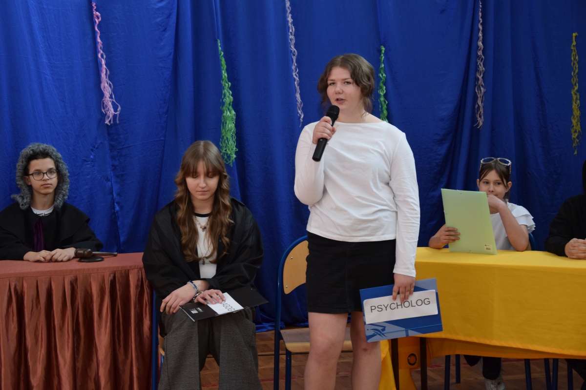 Dnia 13.02.2026r. w naszej szkole odbyło się przedstawienie pt. Sąd nad hejtem, przygotowane przez uczniów klasy 6b pod kierunkiem pani Reginy Hasiewicz. Poruszony w nim został bardzo ważny i aktualny problem hejtu, zwłaszcza w Internecie i w relacjach rówieśniczych.