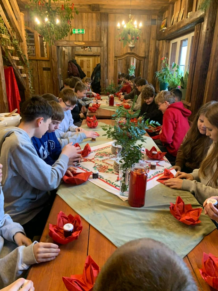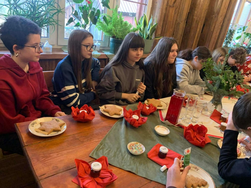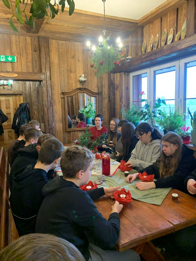 W dniu 16.12.2025r. uczniowie klas 7a i 7b wraz z wychowawczyniami – p. Magdaleną Toboła oraz p. Reginą Hasiewicz uczestniczyli w wyjątkowym spotkaniu z magią nadchodzących Świąt Bożego Narodzenia. Warsztaty bożonarodzeniowe u Panny Apteczkowej z Kodnia – propagatorki smaków swojego regionu – stały się dla nas okazją do zanurzenia się w świecie zapachów, smaków i tradycji, które od pokoleń tworzą niepowtarzalny klimat Wigilii.