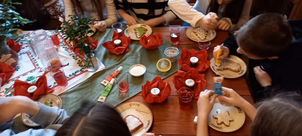 Z wielkim skupieniem i radością dekorowaliśmy pierniki – każdy z nich był małym dziełem sztuki, ozdobionym kolorowym lukrem i świątecznymi dodatkami.