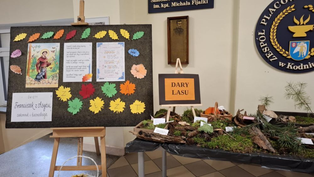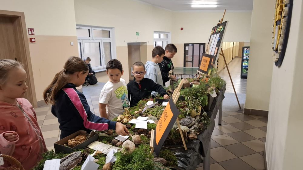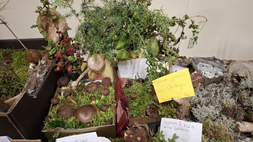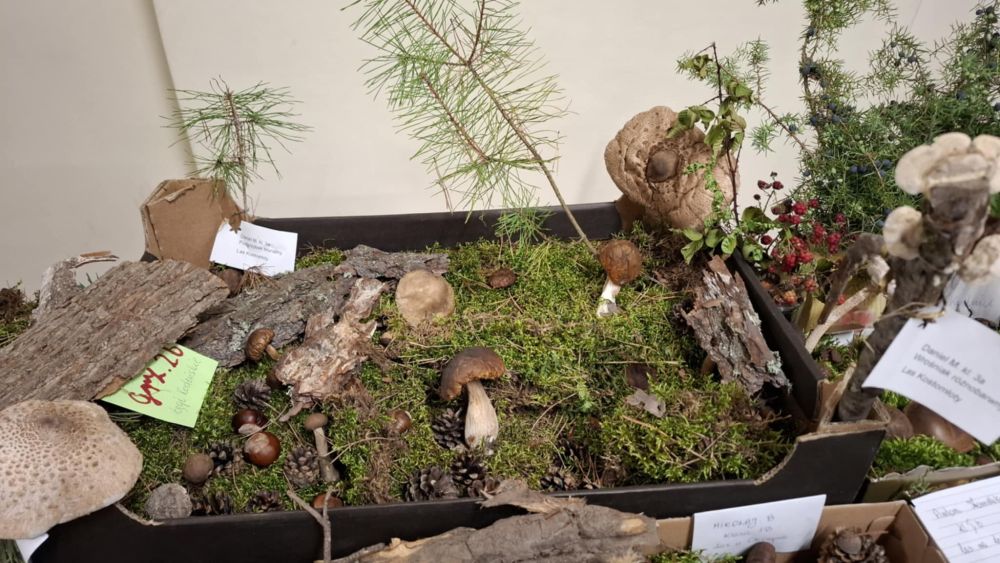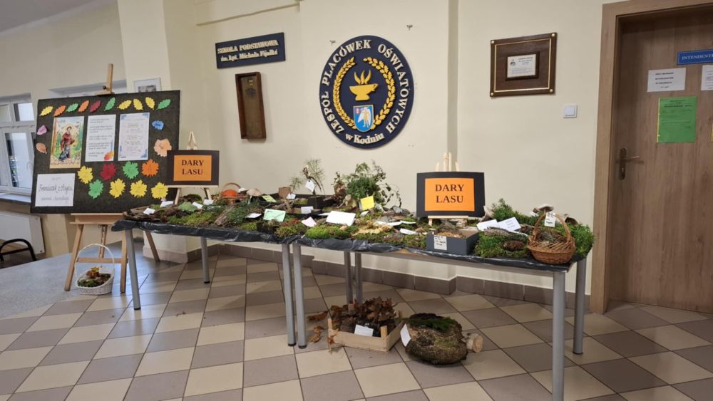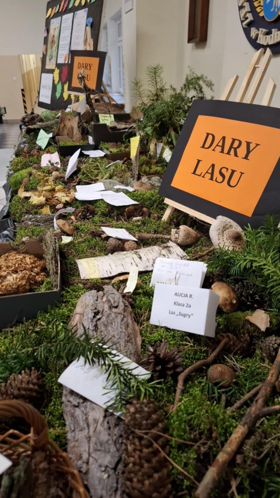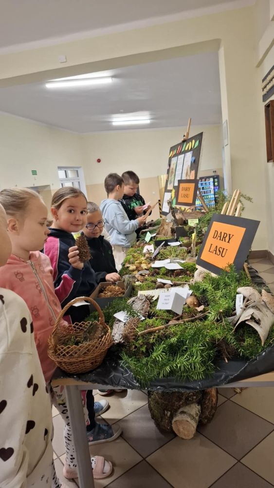 Jak bogate i różnorodne są nasze lasy, mogliśmy przekonać się podczas wystawy „Dary Lasu”, zorganizowanej przez Świetlicę Szkolną. Od 29 września do 9 października 2025 roku w Zespole Placówek Oświatowych w Kodniu można było podziwiać niezwykłą ekspozycję przygotowaną z ogromnym zaangażowaniem uczniów i ich rodziców. Na wystawie znalazły się różne gatunki grzybów, liście drzew, owoce leśne, szyszki, mech, a także fragmenty kory, po których można było rozpoznać gatunki drzew. Nie zabrakło również oryginalnie ukształtowanych kawałków drewna oraz przetworów z darów lasu, przygotowanych przez uczniów i rodziców. Zebrane skarby natury pozwoliły wszystkim uczestnikom wystawy wspólnie podziwiać bogactwo i piękno naszych lasów, a także uświadomić sobie, jak ważną rolę pełnią one w życiu człowieka. Wystawa „Dary Lasu” była nie tylko okazją do rozwijania zainteresowań przyrodniczych, ale również do kształtowania wrażliwości ekologicznej, szacunku do przyrody i umiejętności współpracy. Uczniowie, angażując się w przygotowanie ekspozycji, uczyli się dostrzegać piękno natury w jej najprostszych formach oraz rozumieć, jak ważne jest dbanie o otaczający nas świat. Wspólne działania dzieci, rodziców i nauczycieli po raz kolejny pokazały, że edukacja przyrodnicza może łączyć pokolenia i inspirować do twórczego działania. Nie kończymy naszej jesiennej przygody z naturą! Od 20 października 2025 roku zapraszamy wszystkich uczniów i rodziców do przynoszenia eksponatów na kolejną wystawę — „Dary naszych Pól, Ogrodów i Sadów”. Zachęcamy do prezentowania plonów jesieni: warzyw, owoców, ziaren, zbóż, ziół, kwiatów oraz przetworów domowych. Razem stworzymy barwną i pachnącą wystawę, która pokaże, jak wiele piękna i dobra daje nam nasza ziemia. Dziękują i zapraszają na kolejną wystawę.
