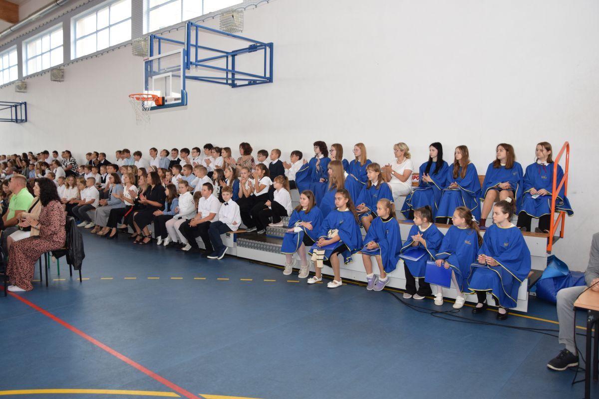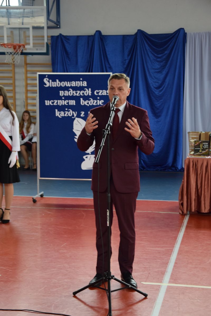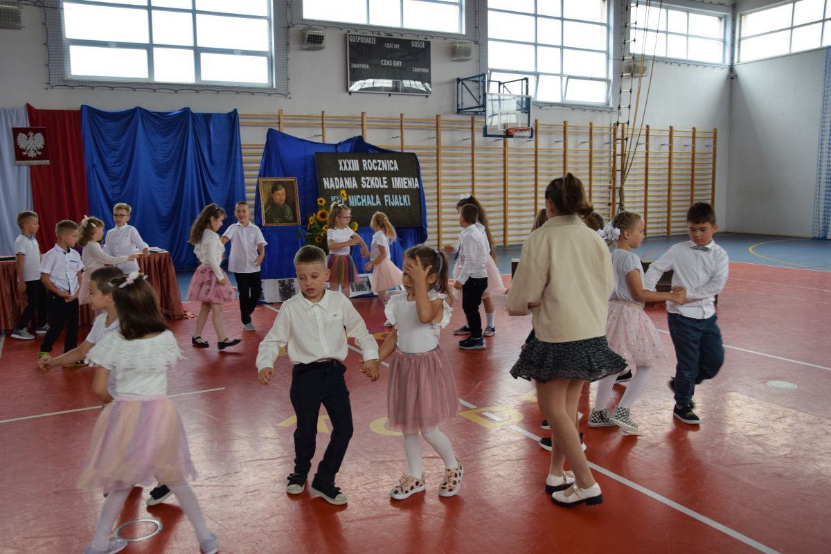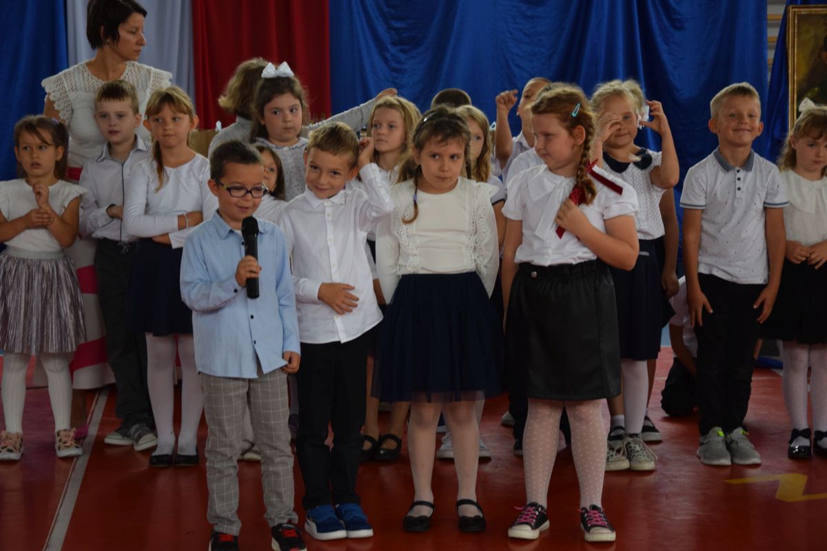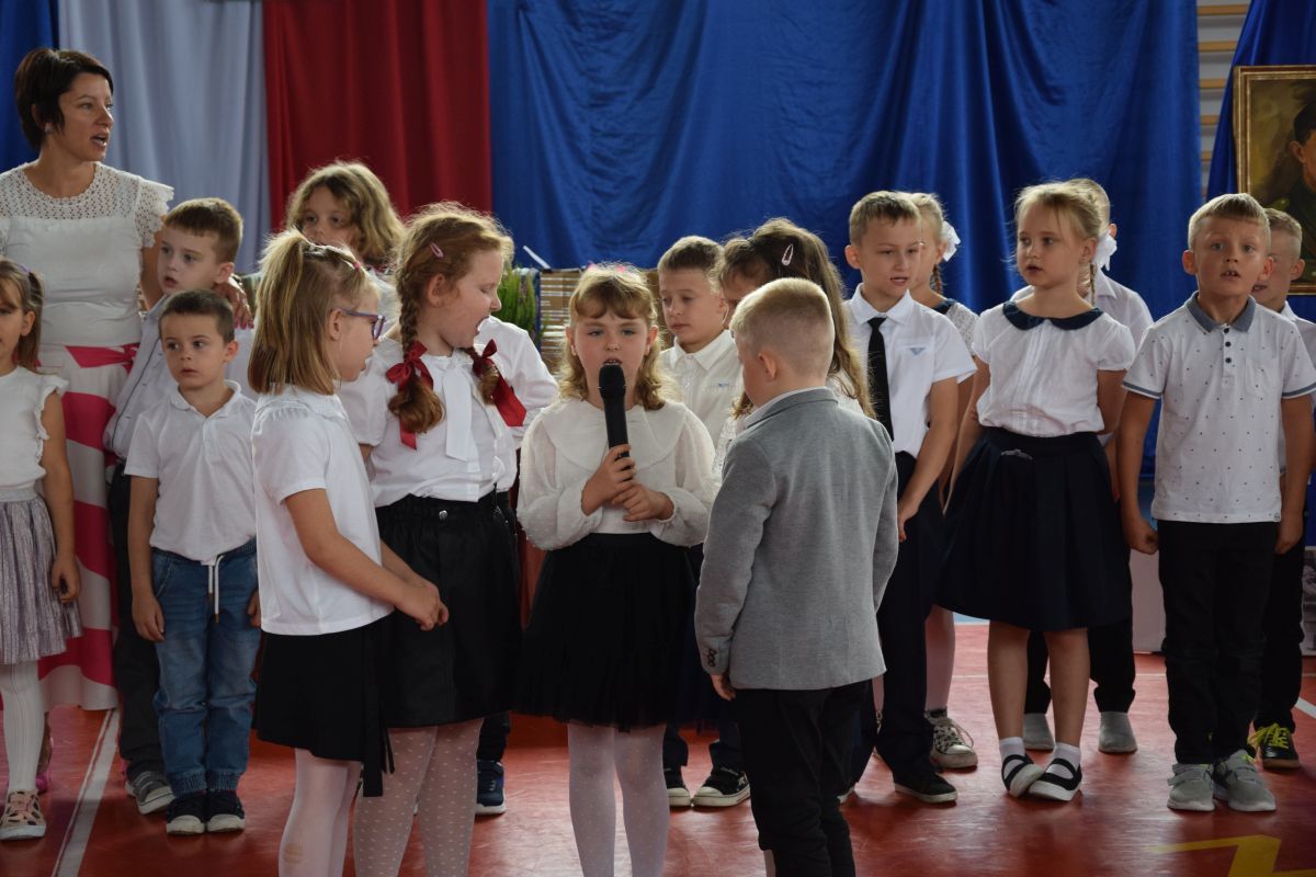 Kulminacyjnym punktem uroczystości było ślubowanie uczniów klas pierwszych, którzy przyrzekali rzetelnie wypełniać obowiązki szkolne, szanować tradycje i być wzorowymi kolegami. W dalszej części najmłodsi zaprezentowali program artystyczny, a następnie przygotowali dla wszystkich występ-niespodziankę – radosne tańce: belgijkę i twist, które spotkały się z entuzjastycznym przyjęciem publiczności.