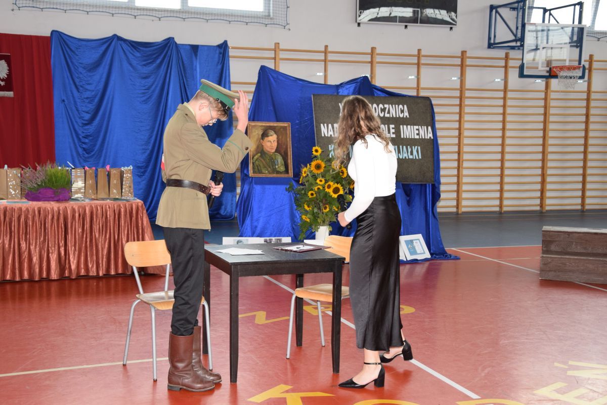 W pierwszej części akademii zaprezentowano postać patrona szkoły kpt. Michała Fijałki – żołnierza, patrioty i wychowawcy. Zgromadzeni obejrzeli program artystyczny w formie wywiadu z patronem szkoły, który „opowiedział” o swoim życiu, służbie i wartościach, jakimi się kierował. Chór szkolny uświetnił uroczystość wykonaniem wiązanki pieśni żołnierskich: ,,Modlitwa obozowa”, ,,Serce w plecaku”, ,,Dziś idę walczyć, mamo”.